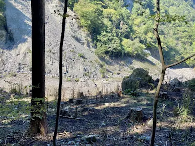 涸れ沢になっている所です。これを伝った先が崩壊地手前にあった青崩峠古道看板の所です
