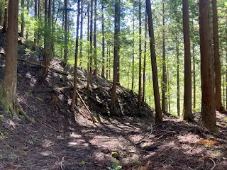その奥も林の風景…ですが、下の秋葉街道の伐採に伴い開けた区間が増えています。